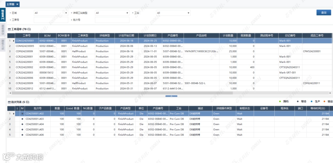 生产建模、品质管理、批次管理、在制品管理、载具管理,实现对产品制造过程中的全线跟踪