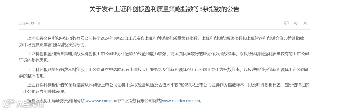 三条科创板指数8月23日发布