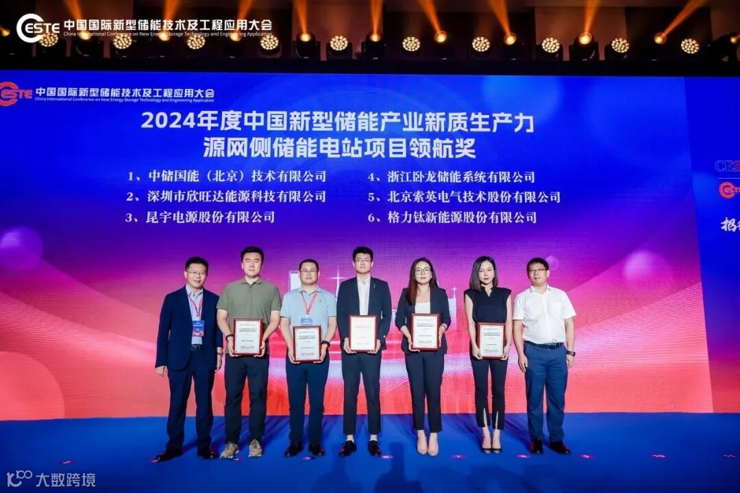 中储国能山东肥城300MW电站荣获“2024年度中国新型储能产业新质生产力源网侧储能电站项目领航奖”