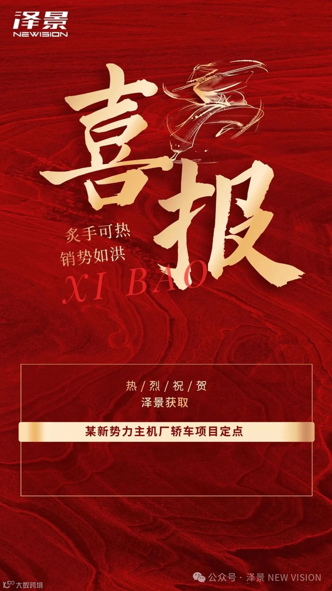 热烈庆祝泽景获取某新势力主机厂2款SUV车型项目定点
