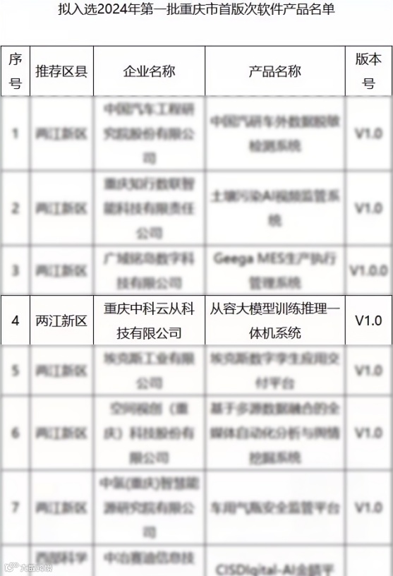 云从科技大模型训推一体机系统入选重庆市第一批首版次产品名录