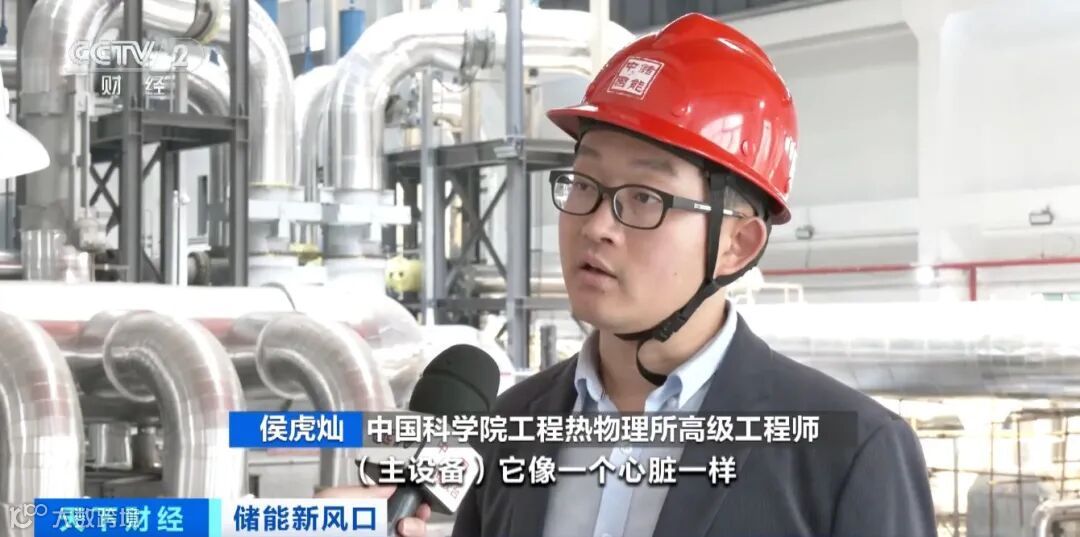 中国科学院工程热物理所高级工程师 侯虎灿:主设备像心脏,有很多管道串联到一起,像血管一样,把从盐穴来的气体输入膨胀机中,用于发电。