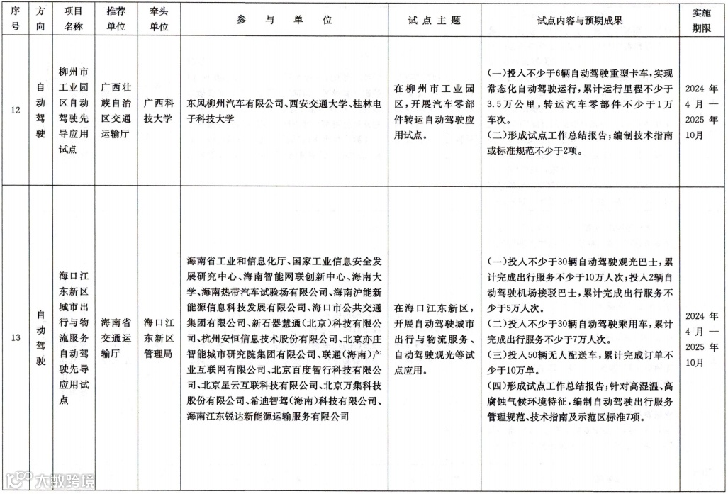 此外,希迪智驾参与的《海口江东新区城市出行与物流服务自动驾驶先导应用试点》、《柳州市工业园区自动驾驶先导应用试点》也都入选了第二批智能交通先导应用试点。