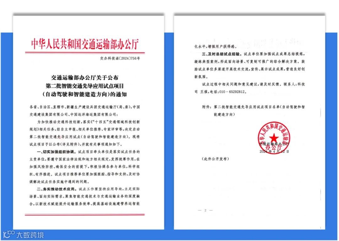 为加快推动交通科技创新,落实《“十四五”交通领域科技创新规划》相关任务,交通运输部启动第二批智能交通先导应用试点。经过自主申报、相关单位推荐、专家评审等环节,全国仅18个自动驾驶方向项目入选本批应用试点。