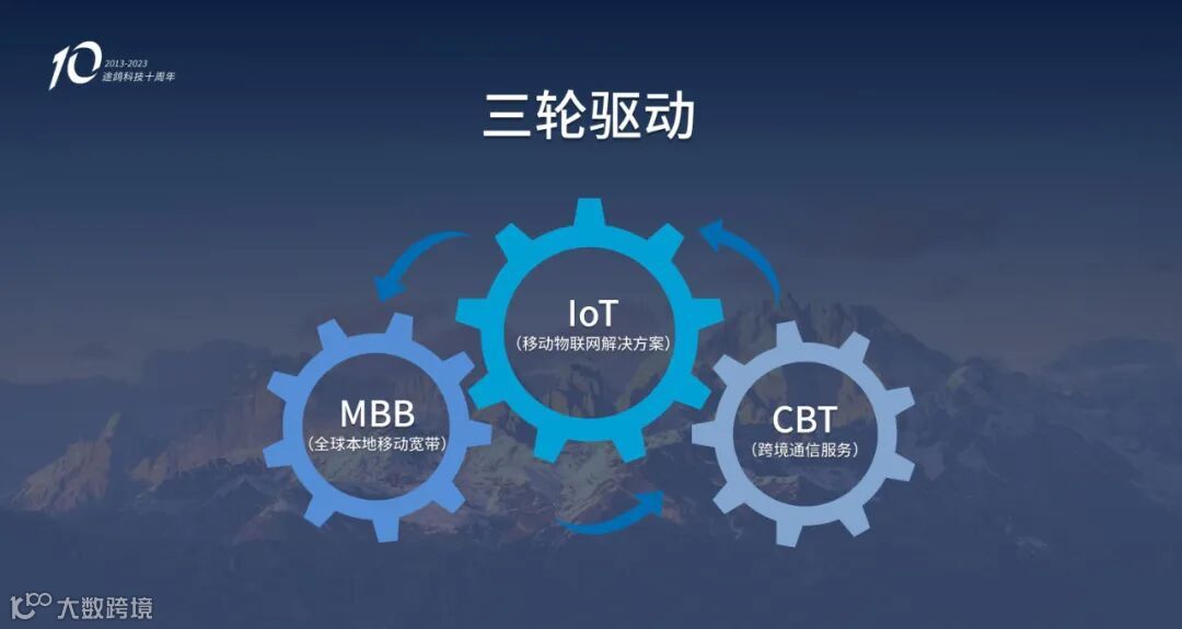 目前途鸽飞轮在MBB(全球本地移动宽带)+IoT(移动物联网解决方案)+CBT(跨境通信服务)三大场景里有着势能优势,途鸽形成了三轮驱动的业务结构。MBB、IoT、CBT三个业务各有特点,就像三个齿轮,互相咬合,相互协同,相互促进,平台资源的综合成本越来越低,为途鸽的高质量发展提供了强大的动能。