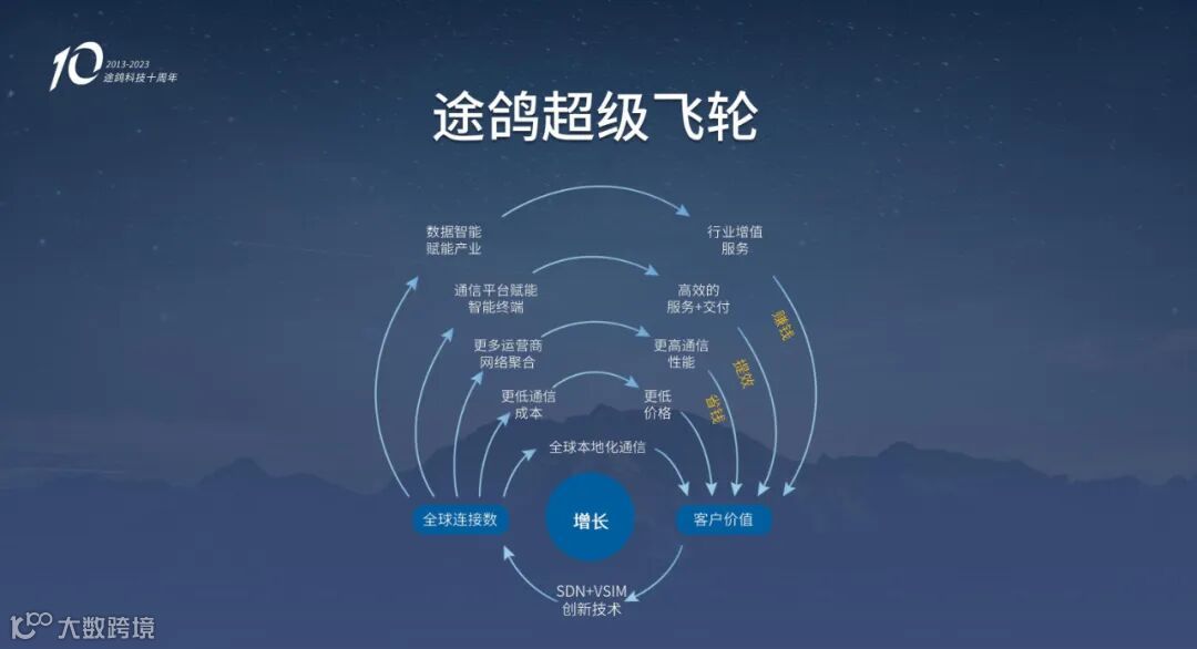 一方面这个飞轮吸引了全球数百个运营商来和我们合作,另一方面这个飞轮激活了各类客户群的价值需求,带来了途鸽收入和业务的可持续跨越式增长。途鸽的商业模式具备很强的势能,我们要用不同的产品和解决方案,把途鸽飞轮在不同场景里应用!