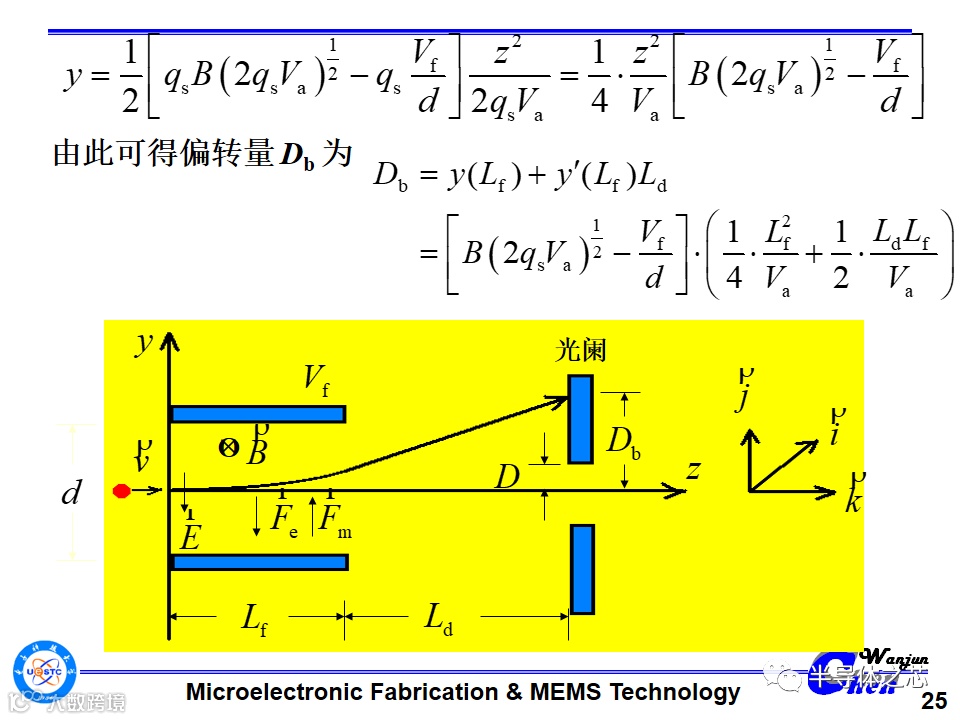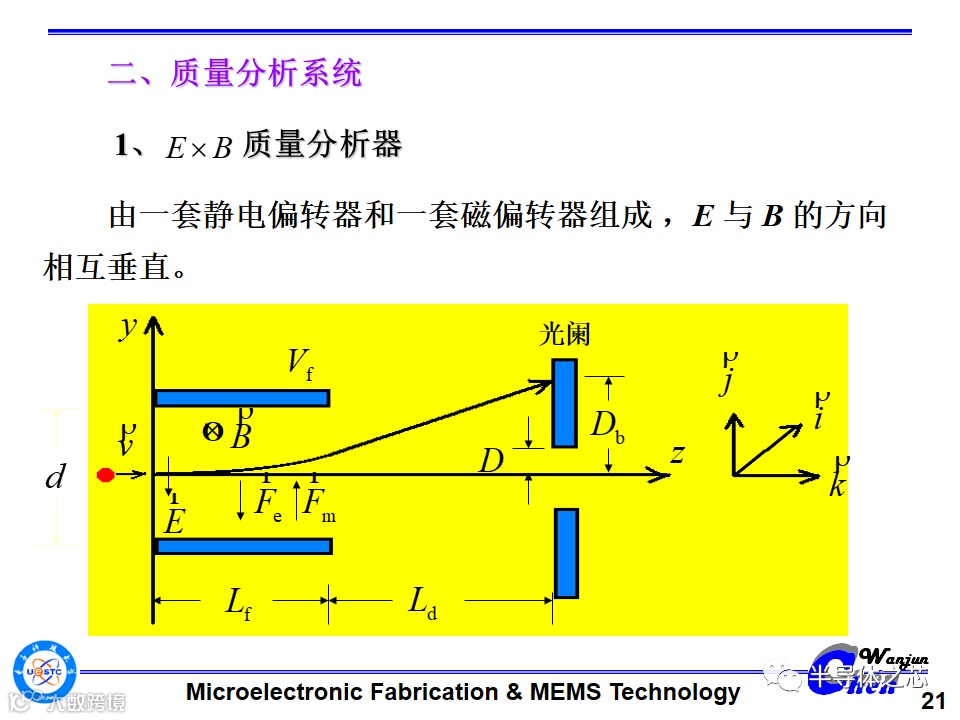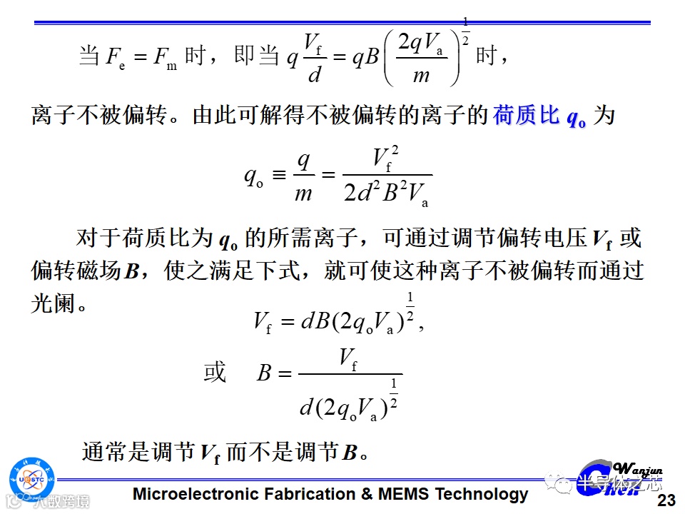 50keV。已知离子的m/q值和离子的能量,通过计算机程序就能够计算出离子轨道通过狭窄缝隙时所需的磁场强度。调整磁铁线圈内的电流可以使质谱仪精确地选择出需要的掺杂离子。