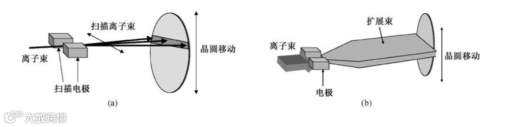 晶圆处理器最重要的作用是在整个晶圆表面形成均匀的离子注入。离子束的直径大约为25mm(约1in)。通常需要移动离子束或移动晶圆,而且有些注入机中两者都需要移动,通过移动使离子束均匀扫描整个晶圆,晶圆直径可以是300mm 的大尺寸。