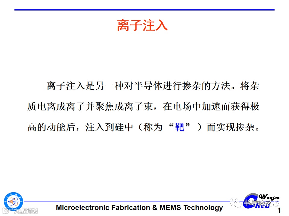 对于P型阱区注入工艺,11B+最常使用,因为在同样的能量等级11B+的重量较轻,所以可穿入到硅衬底较深的位置。对于浅界面离子注入工艺,11BF+,离子最常使用,因为11BF+,离子的尺寸较大且重量较重。在注入机可以提供的最低能量等级范围内,11BF+,离子在这些含硼的离子中具有最短的离子射程,可以形成最浅的Р型界面,将少量的氟整合进入硅衬底可以在硅与二氧化硅界面处与硅的悬浮键结合,从而可以减少界面态电荷并改善元器件的性能。