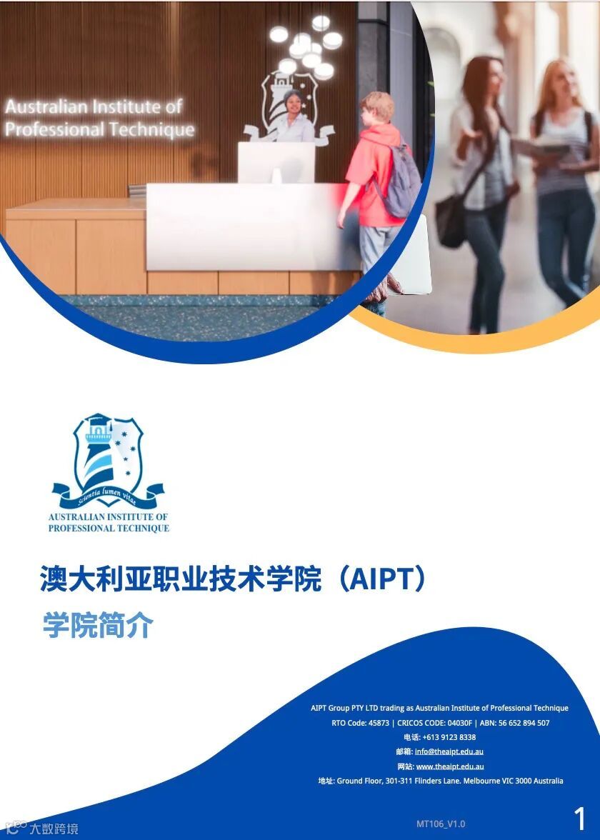 澳大利亚职业技术学院(AIPT)作为一家澳大利亚政府注册(RTO)的职业教育和技术培训学院,符合澳大利亚技能质量管理局(ASQA)的要求,并遵循2015年注册培训机构标准和职业教育培训质量框架(VQF)的要求。学院总部位于澳大利亚墨尔本弗林德斯大道301-311号,邮编3000。