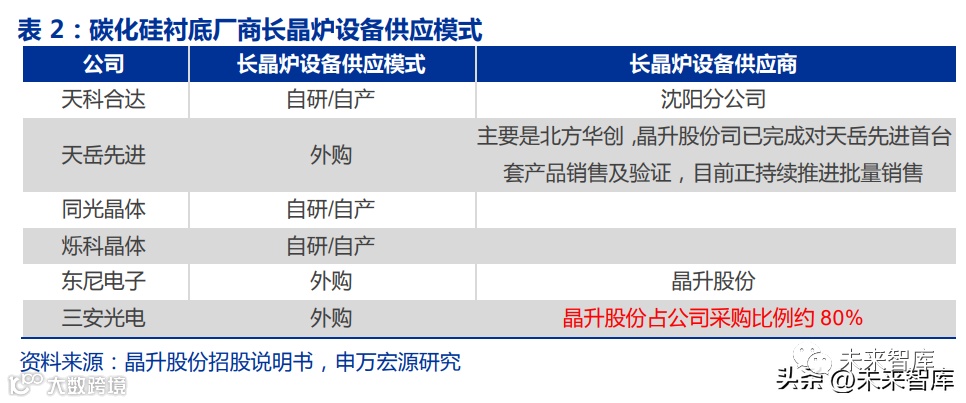 根据晶升股份招股说明书,预计北方华创占国内碳化硅厂商采购份额 50%以上,晶升 股份市占率约为 27.47%-29.01%,二者占国内长晶炉超 77%。