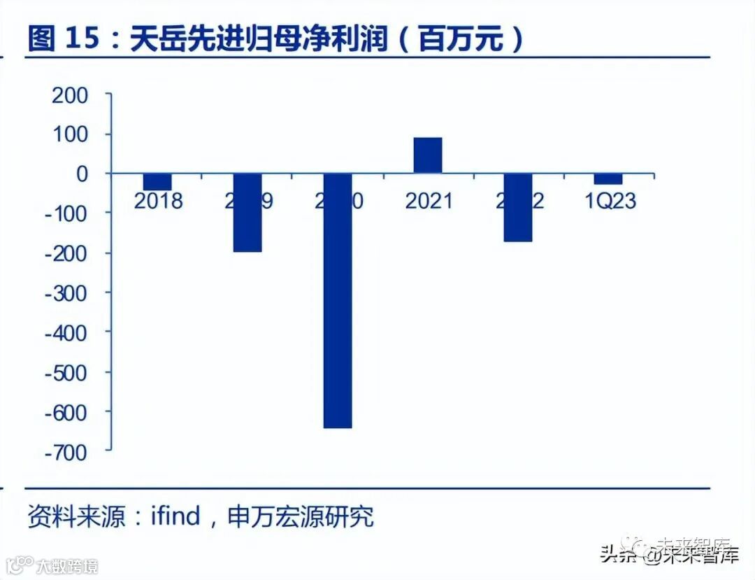 天岳先进是半绝缘型碳化硅衬底龙头,全球市占率保持前三。公司主营业务是半绝缘 型和导电型碳化硅衬底以及晶棒、不合格衬底等其他业务。截至 2020 年,公司半绝缘型衬 底占销售收入的 82%(招股说明书数据)。净利润波动较大。2020-2022 年,公司净利润分别是-6.42、0.90 和-1.75 亿元,2021 年净利润为正,主要系行业景气度较高、公司经营规模扩大、盈利能力增强。2022 年净利 润为负,主要系产线、设备调整等导致临时性产能下滑,以及公司为新建产能投产所招聘 的人员数量较大,导致薪酬支出大幅上升,对净利润影响较大。根据年报,公司济南工厂导电型产品产能产量正快速爬坡。截至 2022 年末,济南工 厂导电型产品的产量已超过半绝缘型。