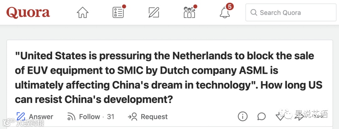 这样的现状下,高端芯片自然就成了“卡脖子”问题,原因是极大的需求量和极低的自供给量,所以美国制裁华为,杀手锏就是芯片。近期在美版知乎论坛上就有这样的一个话题引起各国网友的热议:“美国向荷兰施压,阻止荷兰ASML公司向中芯国际出售EUV设备,最终影响了中国的技术梦”。美国能压制中国芯片发展多久?