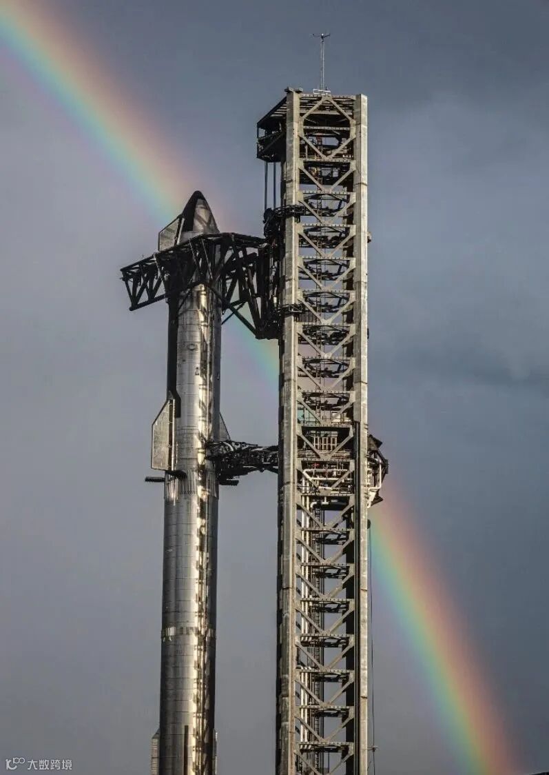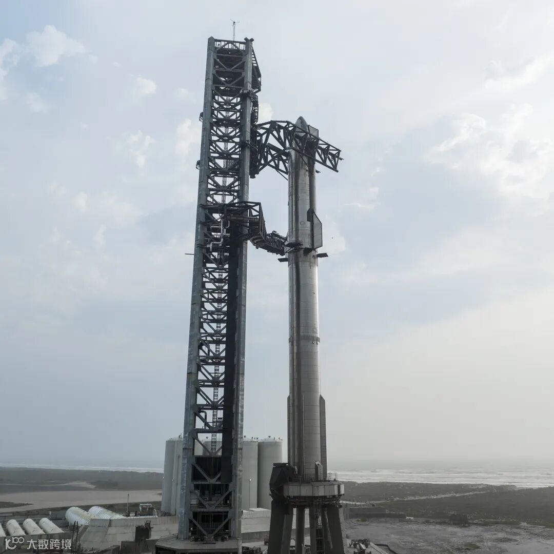 轨道发射接收塔、轨道发射台、星舰S24和超重B7组合体