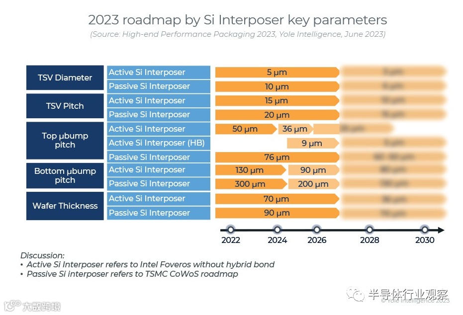 所有高端性能封装平台的主要技术趋势包括减少互连间距,无论类型如何。这涉及到 TSV、TMV、 微凸块,甚至混合键合,这已经是最激进的解决方案。除此之外,通孔直径和晶圆厚度有望降低。这种技术发展对于一方面保持更复杂的单片芯片的集成,另一方面保持小芯片的集成是必要的,以支持更快的数据处理和传输, 同时确保更低的功耗和损耗,并为后代提供更高的密度集成和带宽 .