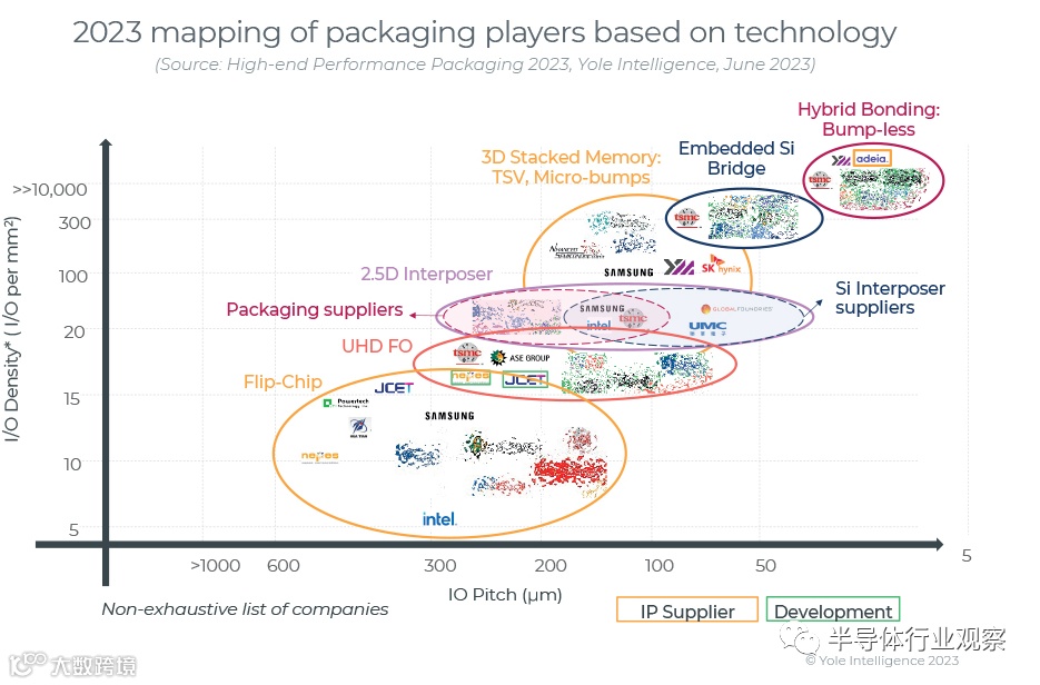 在高端封装中,OSAT 的业务正在被代工厂和 IDM 蚕食。展望未来,无晶圆厂可能会被尖端交钥匙服务的前景所吸引,例如最新的硅节点制造技术加上先进的封装。然而,日月光、SPIL、Amkor、JCET、TF 和 华天等顶级 OSAT 正在努力跟上领先封装业务的步伐,专注于 2.5D 解决方案,如mold compound中的有机中介层和嵌入式硅桥。这是进入混合键合市场的缺失可能性的一个很好的替代方案。即使 OSAT 无法生产接近 FE 制造的 HEP 封装解决方案,它们在最终封装组装和测试中无处不在。