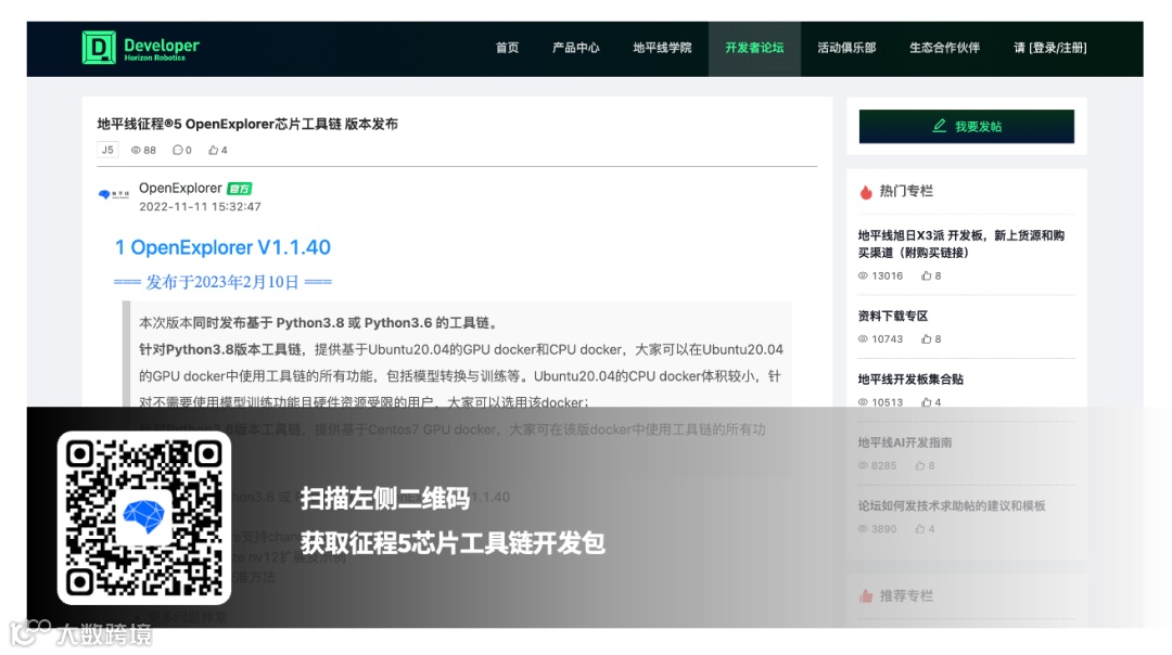 目前,相关基础示例模型均已随征程5芯片工具链发版,用户可直接通过「地平线开发者社区」获取相关文档与开发包,复现benchmark结果。