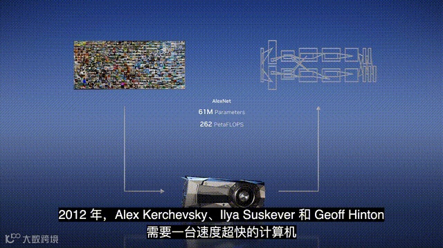 老黄表示,2012年深度学习元老Hinton和学生Alex Kerchevsky、Ilya Suskever在训练AlexNet时,用的正是GeForce GTX 580。