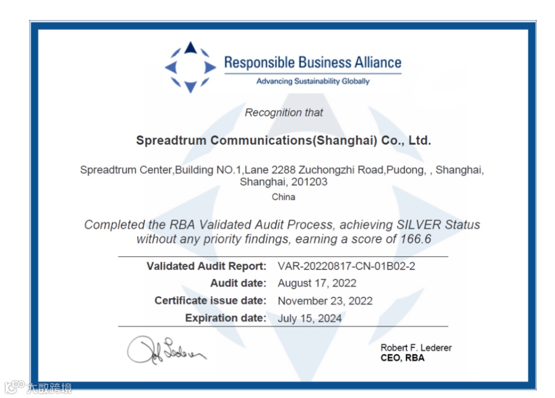 紫光展锐荣膺责任商业联盟(RBA)银牌认证,获国际认可
