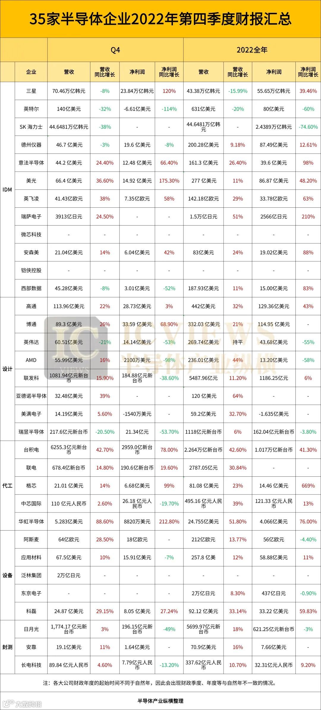 全球35家半导体企业2022年过的如何?
