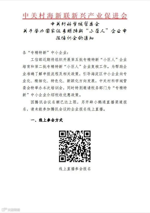 线上直播通道已开启~报名从速!关于举办国家级专精特新“小巨人”企业申报培训会的通知