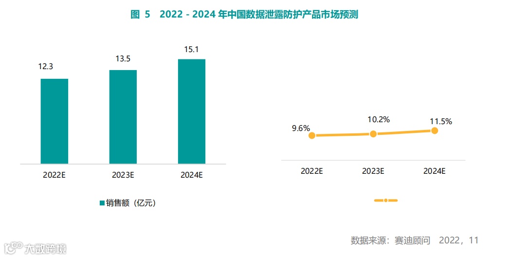 近三年,我国的数据泄露防护市场复合增长率预计将达到10.4%,到2024年市场规模将达到15.1亿元。