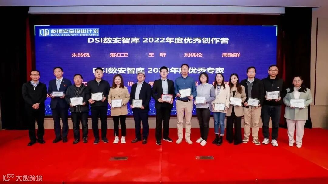 此外,数据安全推进计划(DSI)第一次全体会议暨TC601 WG5 数据安全工作组组会也于3月30日如期召开。会上,亿赛通公司被授予“DSI 2022年度优秀贡献单位”,亿赛通咨询研究部两位专家凭借过去一年在标准研制和技术研究工作中的杰出表现被授予“DSI数安智库2022年度优秀专家”。