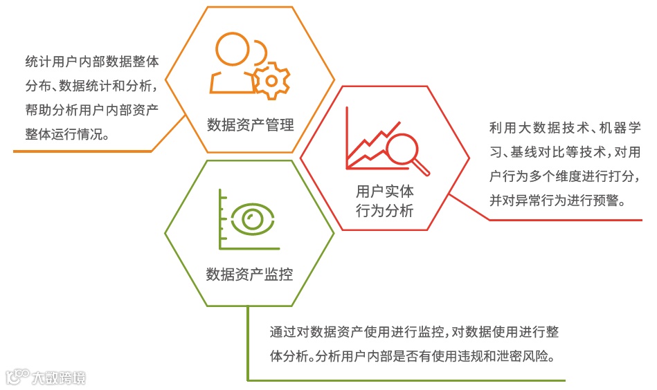 对数据资产和用户活动进行上报、分析、跟踪,可以为企业提供可视化的用户肖像,为企业提供完整数据资产全景以及用户效率分析。让企业数据行为可视化,为保障企业安全运营提供强有力的保障。
