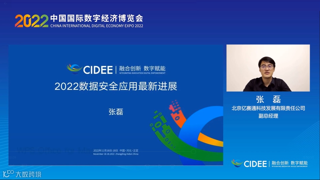 11月16日,2022中国国际数字经济博览会网络和数据安全产业发展高峰论坛线上召开。博览会由工业和信息化部与河北省人民政府联合主办,其中网络和数据安全产业发展高峰论坛作为展会的重要论坛,由工信部网络安全产业发展中心承办,亿赛通副总经理张磊在主办方的邀请下,为线上观众上演一场安全盛宴,深入剖析2022数据安全应用最新进展,揭秘亿赛通数据安全治理的破局之法。