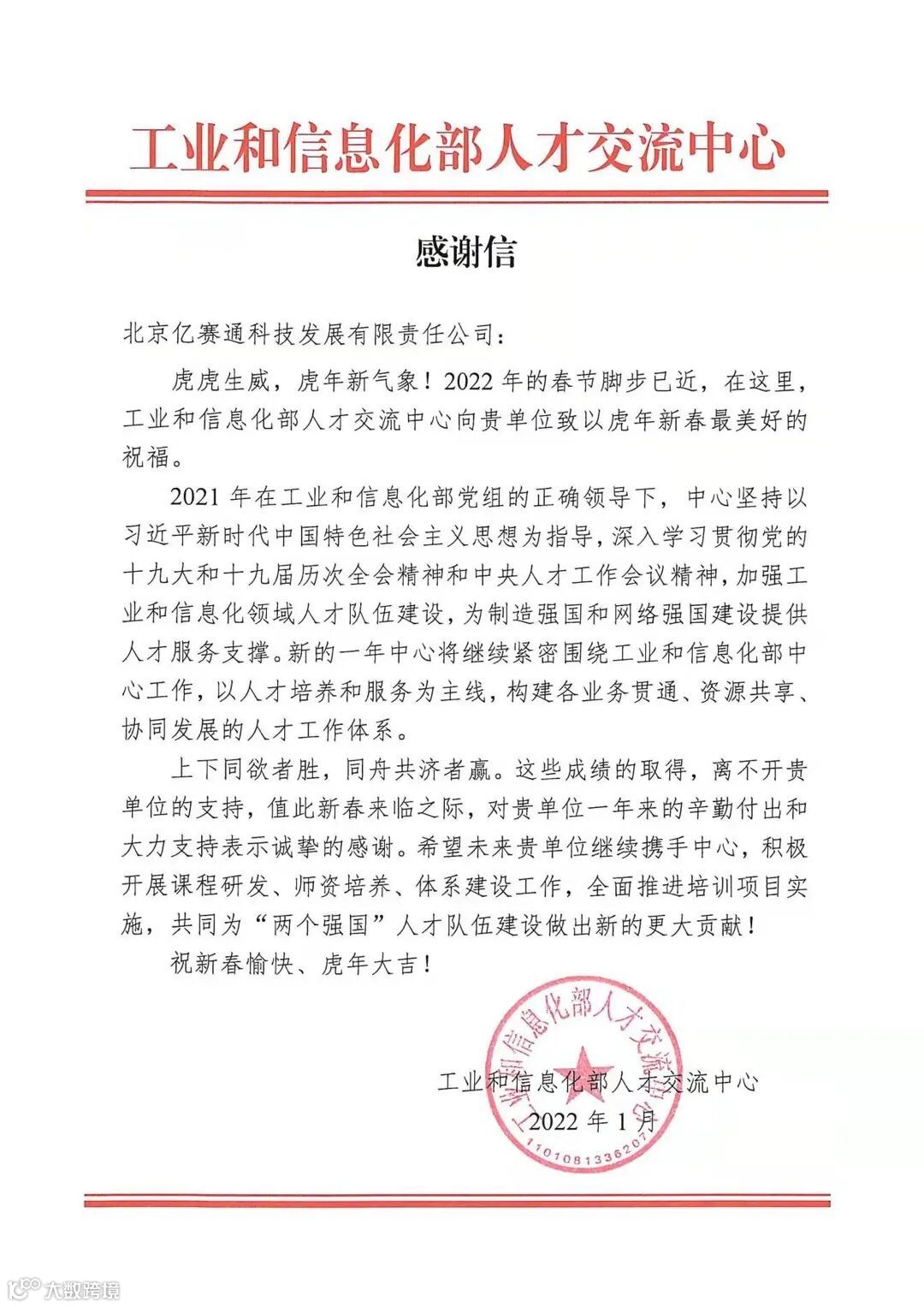 在学员收获喜悦的同时,亿赛通也收到了工信部人才交流中心的感谢信,大大地增加了亿赛通培训体系建设与数据安全人才培养的信心。