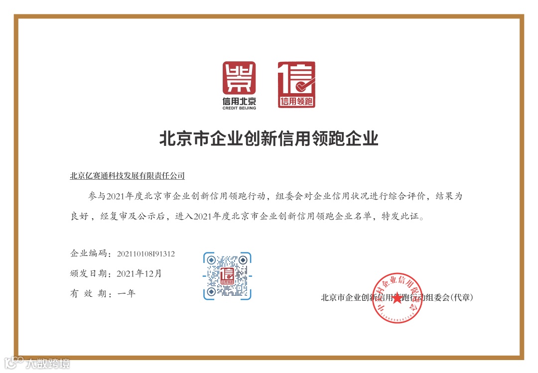 近日,备受瞩目的2021年度北京市创新信用领跑行动最终名单已发布,亿赛通凭借其持续的创新实力及近二十年积累的良好信用记录成功入围。