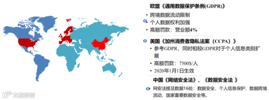 最近几年,全球信息安全监管环境趋严,全球107个国家和地区目前已制定数据安全和隐私保护法律。