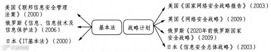 以德国、俄罗斯、日本为代表的大陆法系国家,在国家基本法框架下。针对国内信息安全问题与信息安全法制建设需要。颁布多项单行法规,形成“基本法+单行法”的立法模式,以德国和俄罗斯为代表的信息安全综合法开始出现。