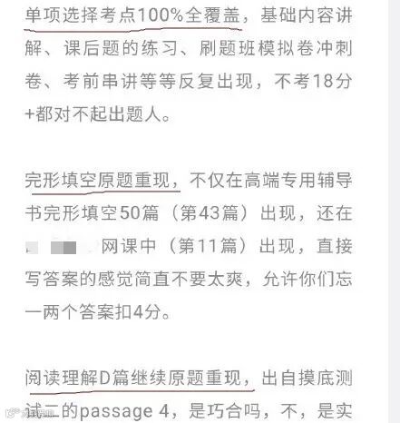 文章称,继去年专升本考试押中88分之后,该机构在本次专升本考试中语文,工程数学、英语、色彩等科目上押题命中率达95%以上。英语单项选择百分百全覆盖,完形填空、阅读理解原题重现。