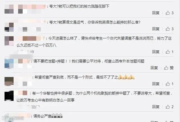 机构称此次押题命中率极高,但网友呼吁:“请不要把泄题=押题!!我们需要公平对待”“希望彻查”“希望给广大学子一个交代”。