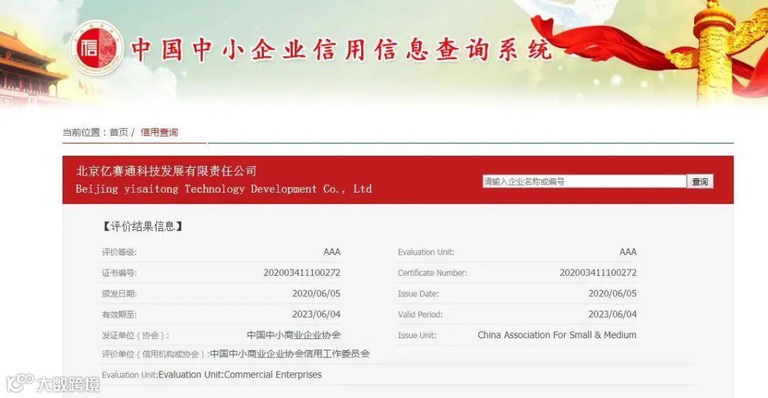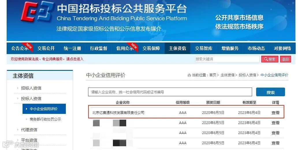 获得AAA信用企业在工信部中小企业信用信息平台、发改委中国招标投标公共服务平台、中国招标投标信用公示平台、中国中小企业信用信息备案系统四个平台备案公示企业和企业上下游客户随时可查询;