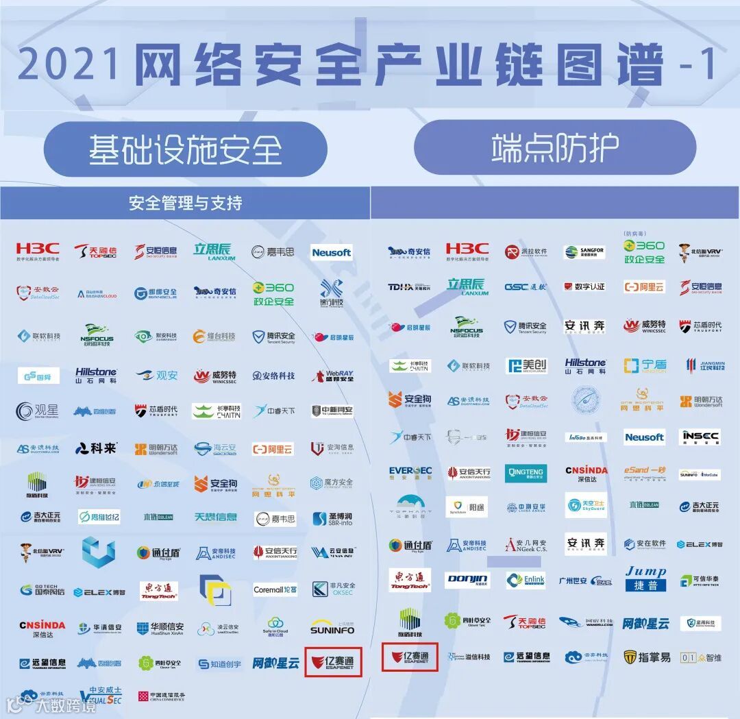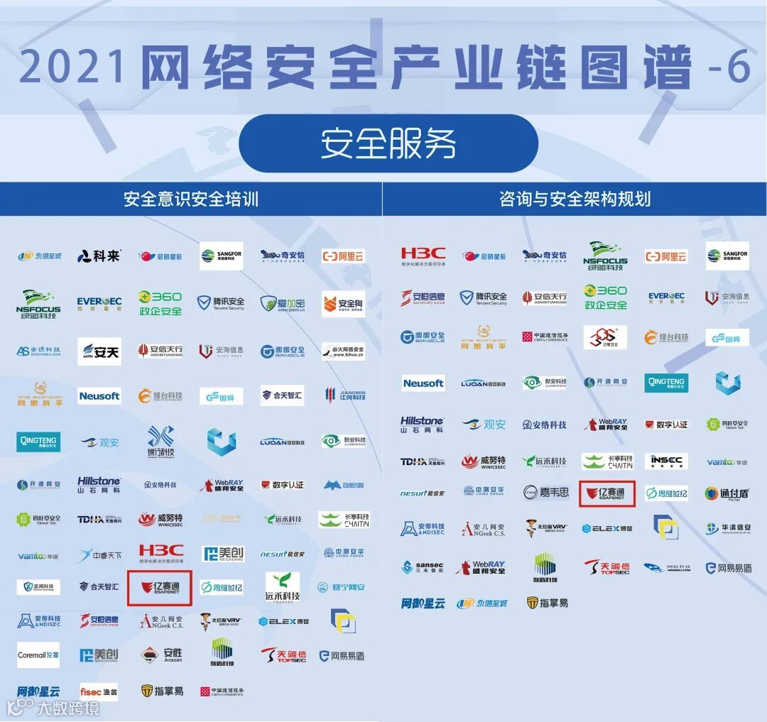 近日,在由国内网络安全行业第三方权威媒体嘶吼发布的《2021年网络安全产业链图谱》(以下简称“全景图”)中,亿赛通凭借业内领先的创新技术和成熟的电数据安全产品及服务,入选十二项细分领域。