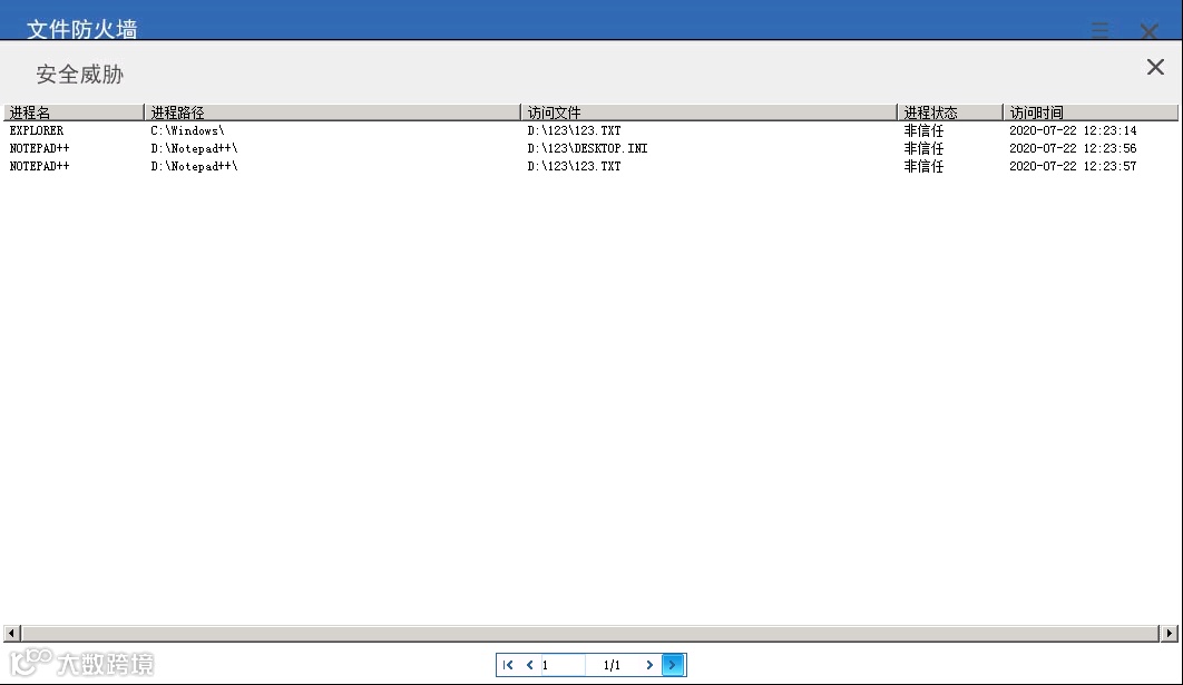 4、智能检测到非法进程访问被保护文件类型或者目录,产品立即拒绝应用进程的访问,并记录违规访问记录。