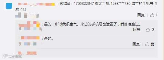 随后,该网友在微博下的留言中进一步表示,他通过技术查询,发现不少人的手机号已被泄露,当中涉及不少微博认证的明星、官员、企业家。“来总的手机号也被泄露了,我昨晚查过。”(“来总”代指微博CEO 王高飞)