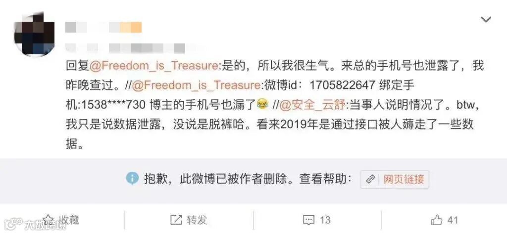 前几日,某用户转发微博时称:“很多人的手机号码泄露了,根据微博账号就能查到手机号……已经有人通过微博泄露查到我的手机号码,来加我微信了。”