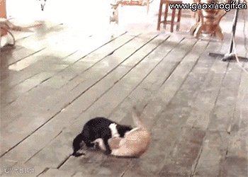 10、两只猫咪打架,跑来两个狗狗劝架,但阿汪啊 你是不是太用力了一点呢 猫咪都被你踢飞了
