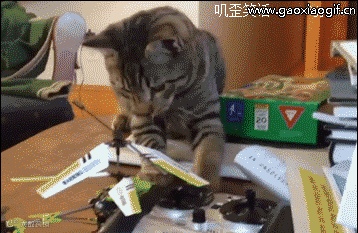 10、喵星人要不要这么可爱啊 被一个玩具飞机吓成这样