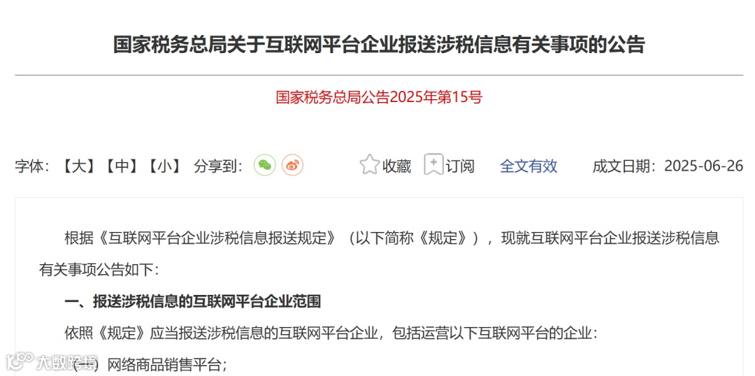 特别提醒:根据《《国家税务总局关于互联网平台企业报送涉税信息有关事项的公告》》