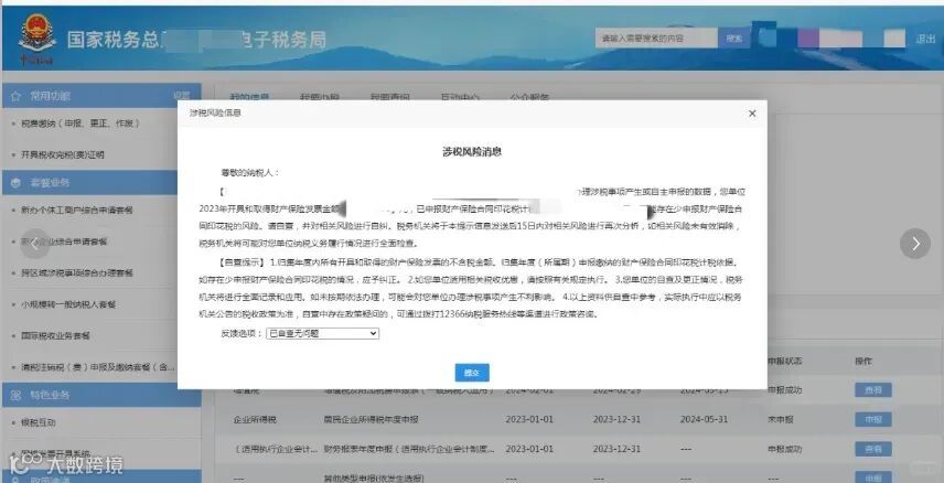 经税收大数据分析,我们发现您存在以下涉税风险:
