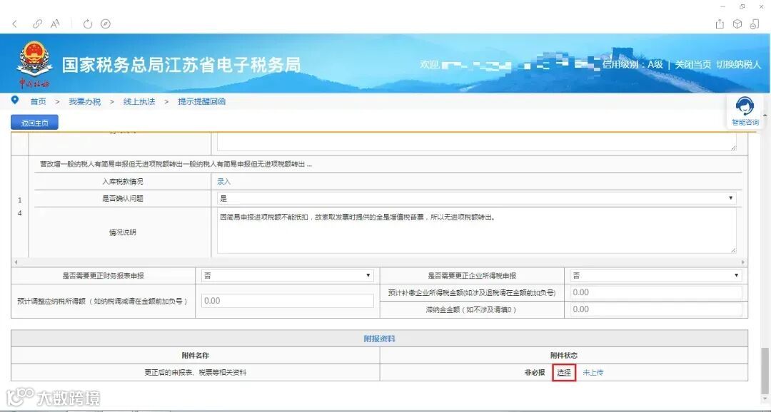 附报资料为非必报项,可以点选择,上传更正后的申报表、税票等相关资料。