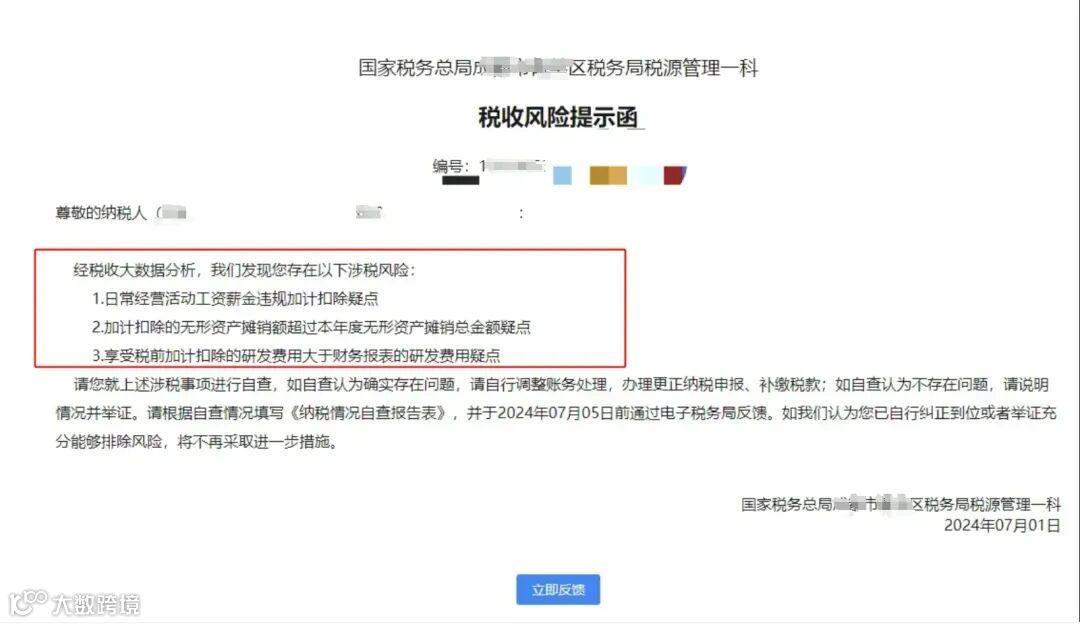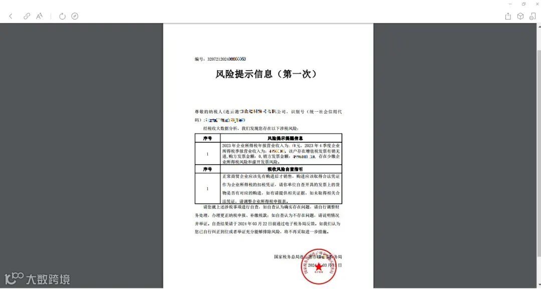 税务局作为征税机关,也在时刻监控着企业的税务情况,一旦发现问题,就可能采取进一步行动,其中有一个行为就是给企业下发风险提示函。