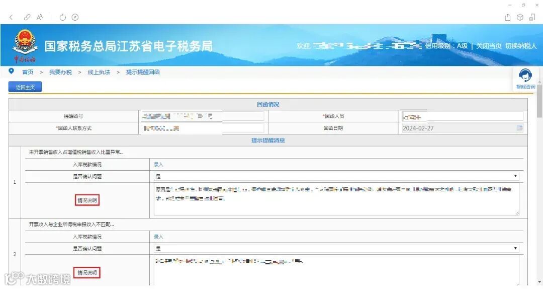 纳税人收到税收风险疑点信息需要在期限内完成自查、反馈。