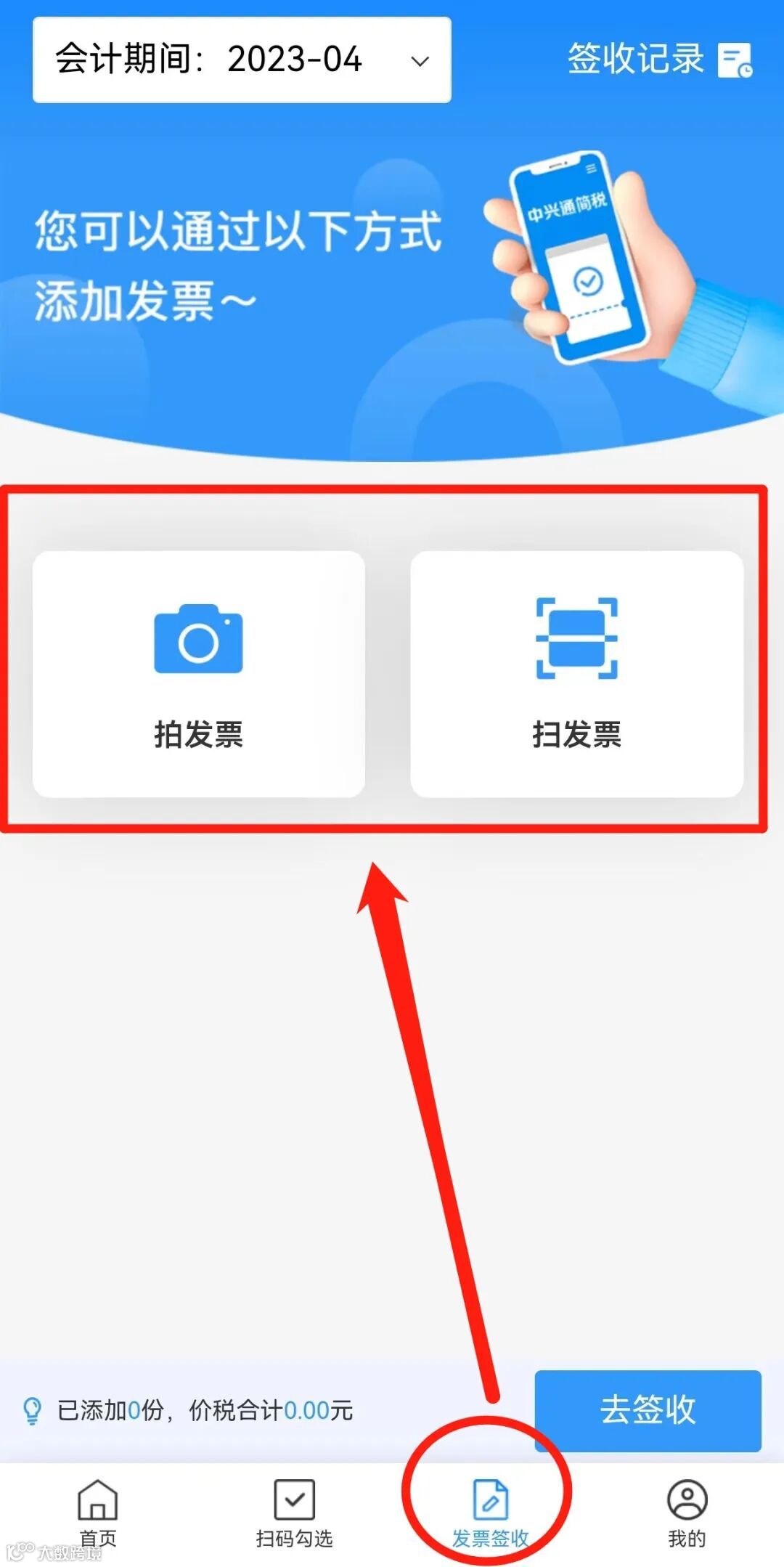 财务:通过【中兴通简税】小程序,可采用手机拍照、扫码等任一方式签收发票。