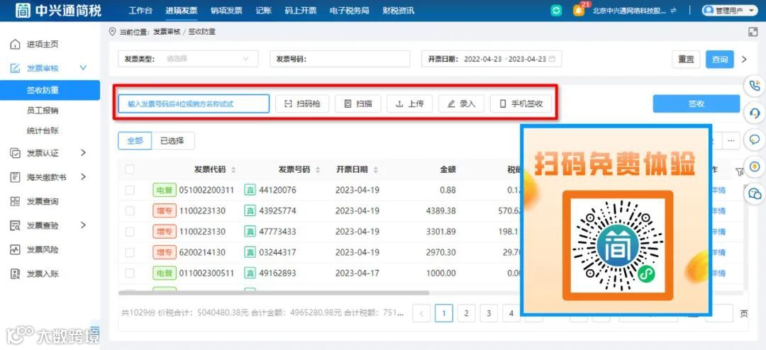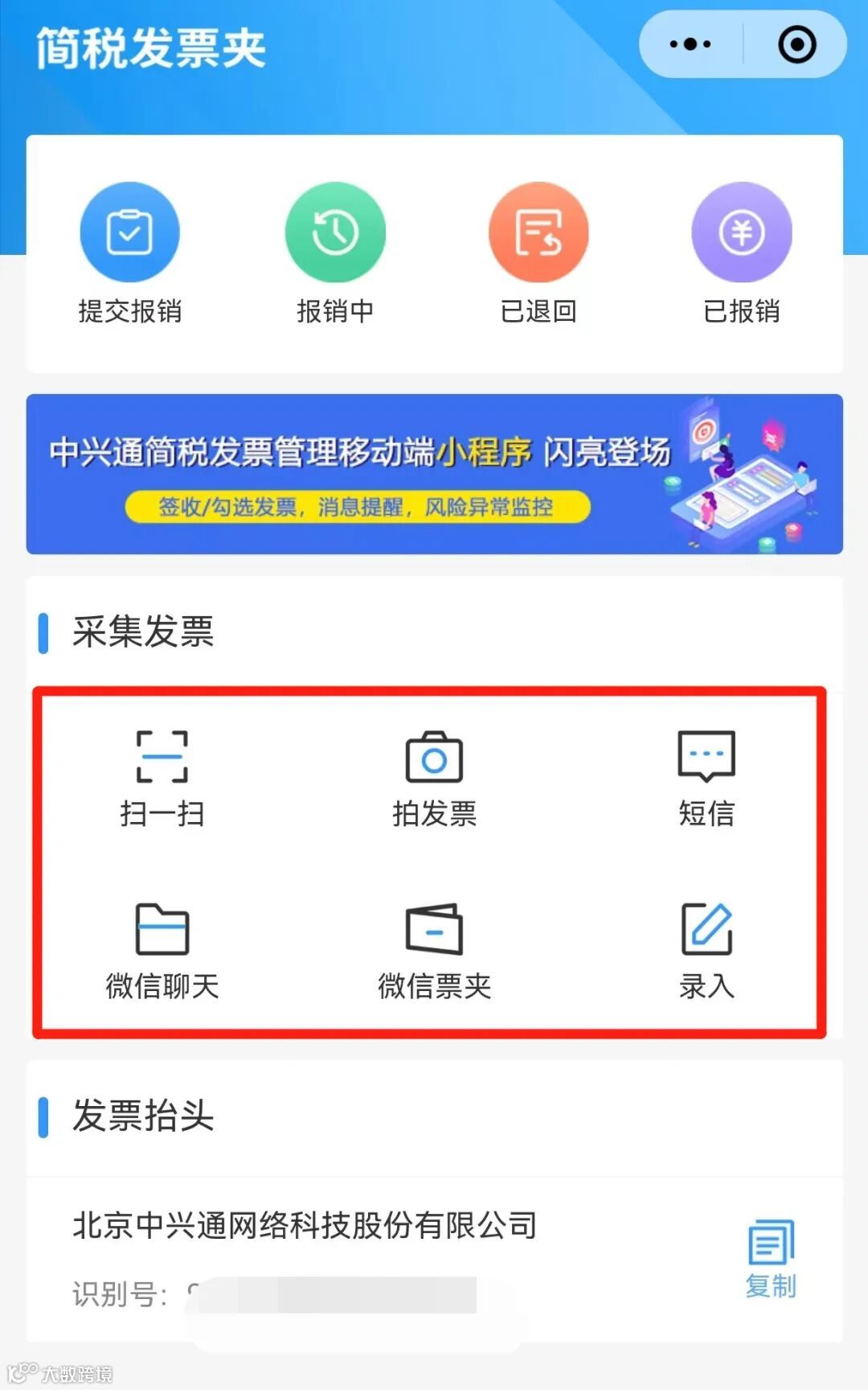 中兴通简税,新上线的全票种自动采集功能,除了支持采集各类发票外,还能通过手机拍照、手机扫一扫、扫描枪扫一扫、微信票夹、聊天文件、短信粘贴等多形式快速获取发票信息。
