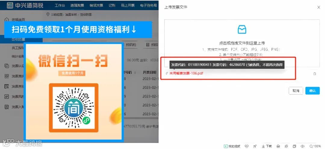 比如:用中兴通简税管理发票,一旦数电票入库,系统就自动查重,且遇到重复报销自动提醒:该发票之前已签收,帮助企业有效规避发票涉税风险!